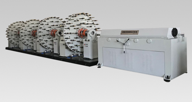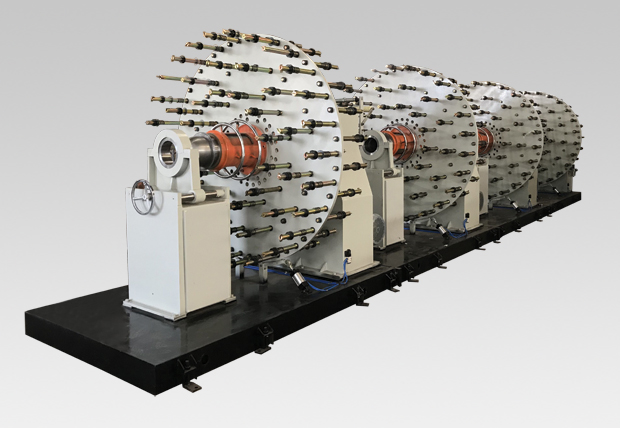 1.SCR系列鋼絲纏繞機配備我公司設計的大容量滾動線軸和漲力補償器(我公司產品),實現(xiàn)了每根鋼絲單獨控制漲力和機下預先調整保障了每根鋼絲放線漲力一致,解決了大線軸與小線軸的漲力差,克服了纏繞旋轉離心力,提高了纏繞質量,降低了鋼絲的浪費,提高了工作效率50%以上。采用每盤行